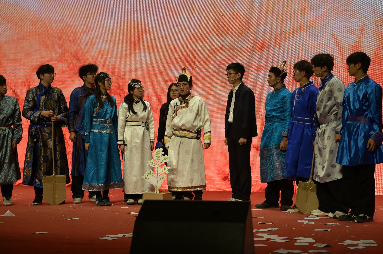 2025年12月11日,388vip太阳集团第三届铸牢中华民族共同体意识校园舞台剧大赛在校音乐厅举行。388vip太阳集团凭借原创剧目《草原·长调·治沙魂》脱颖而出,荣获大赛一等奖。
