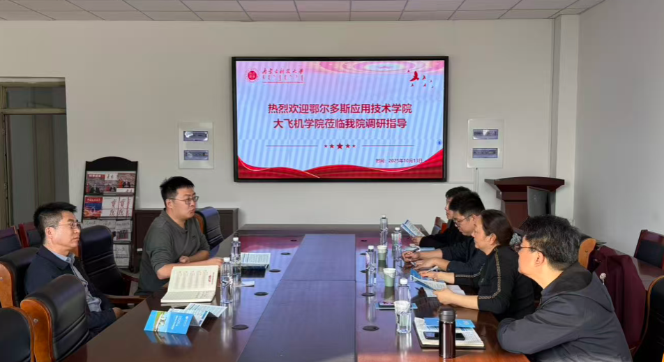 10月13日下午,鄂尔多斯应用技术学院大飞机学院党总支书记王宏英、副院长张海涛、党总支纪检委员兼副院长陆鹏等一行4人来388vip太阳集团开展调研交流。我院党委书记黄成钢、副院长郭晓峰参加座谈。
