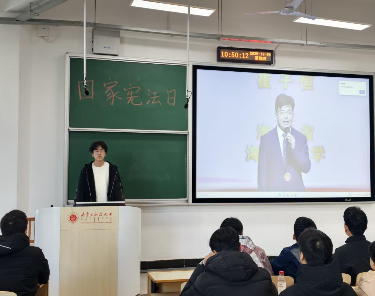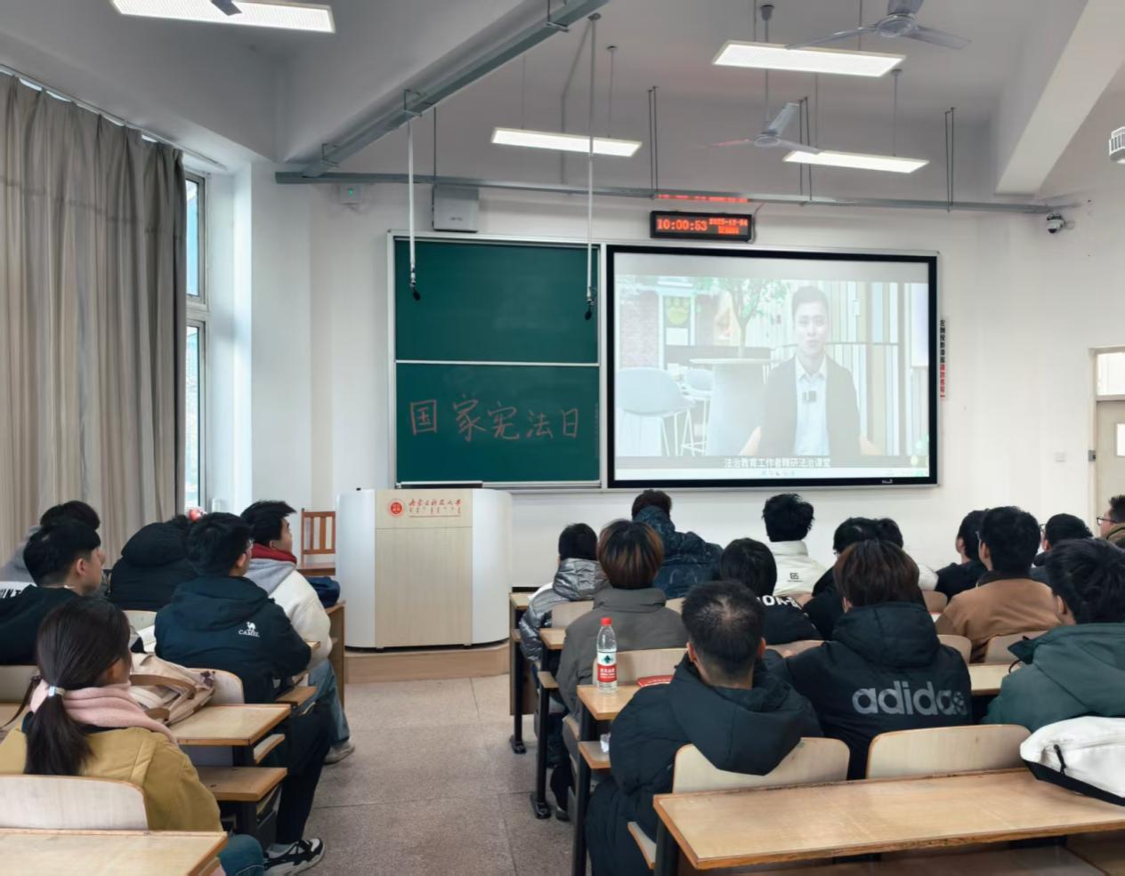 2025年12月4日上午,在第十二个国家宪法日到来之际,388vip太阳集团组织无课班级学生集中观看了教育部全国青少年普法网“宪法晨读”活动直播。此次活动旨在学习宣传贯彻习近平法治思想,弘扬宪法精神、维护宪法权威,切实增强学生的宪法意识和法治素养。