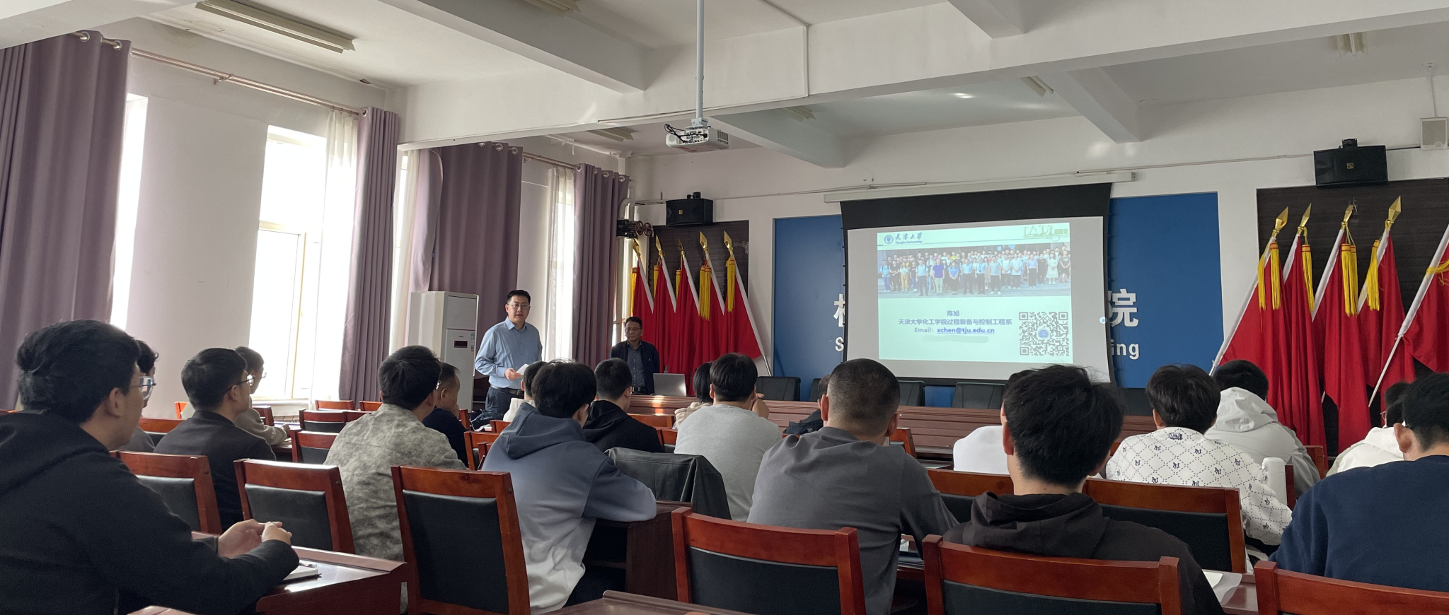讲座中,陈旭教授以过程装备在能源、化工领域的核心地位为切入点,阐释“结构完整性”内涵——装备全生命周期需满足强度、刚度、密封性及抗失效能力要求。他结合团队研究,重点讲解二大技术方向:一是极端工况下装备损伤机理与预测模型,借多物理场耦合仿真揭示材料疲劳裂纹扩展规律;二是先进无损检测与健康监测技术,介绍超声相控阵、光纤传感系统的运维应用。